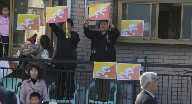 | Inhabitants of Fukushima cheer the Royal Couple with Bhutan flag in response to King’s much-appreciated gesture to visit the region. Someone wrote to me “HM’s visit to Japan was like as if the real dragon showed up out of the blue clearing out the gloom and brought happy smiles to the Japanese people with the sun light after the storm |