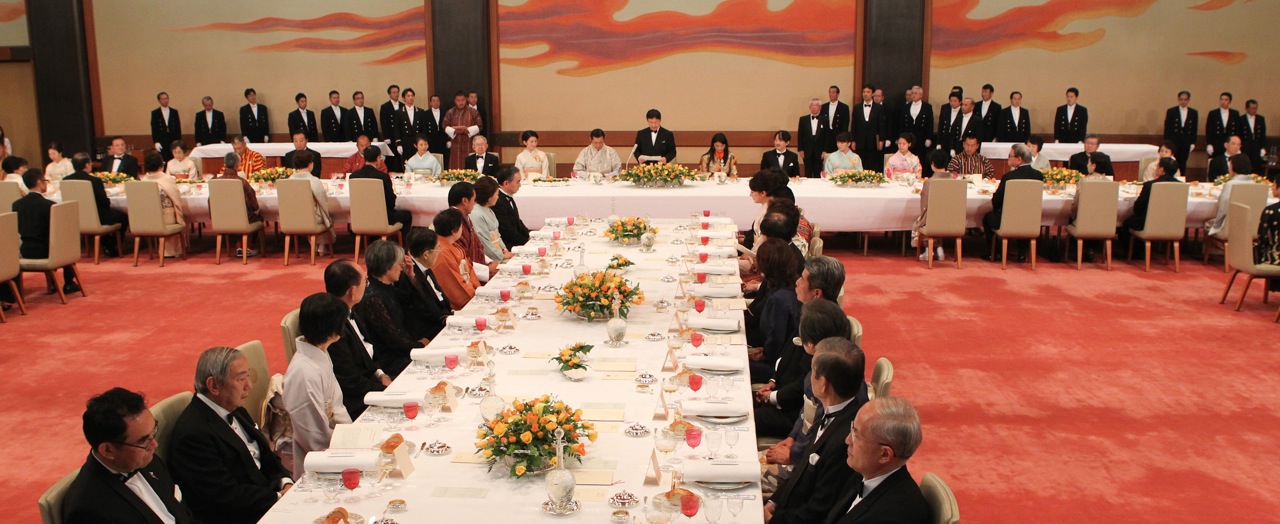 The State Banquet in honour of His Majesty the King and Her Majesty the Queen. In his banquet address His Majesty paid homage to the emperor and to the people of Japan for the special bond. I sat next to Honorary Consul to Bhutan, Hitomi Tokuda and the beautiful wife of trade minister Yukio Edano. Edano is famous for his role as the cabinet secretary in the post March 11 disaster. I also shared a wonderful joke with finance minister Jun Azumi. I also heard the most beautiful Bhutan’s national anthem played here by the Imperial household orchestra.