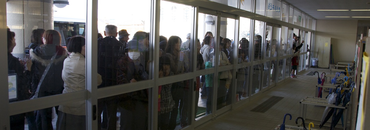 In Sakuragako School in Fukushima those who weren’t invited wrapped the building making the Japanese security details quite nervous.