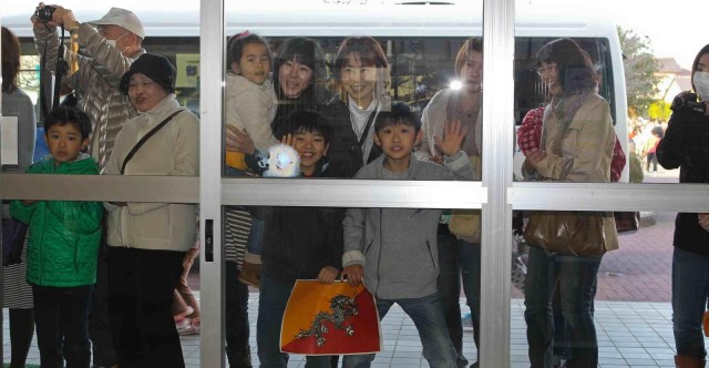 People came out of their houses and work places and waived Bhutan flags all along the 100 km or so ride from Fukushima station to Soma Port.
