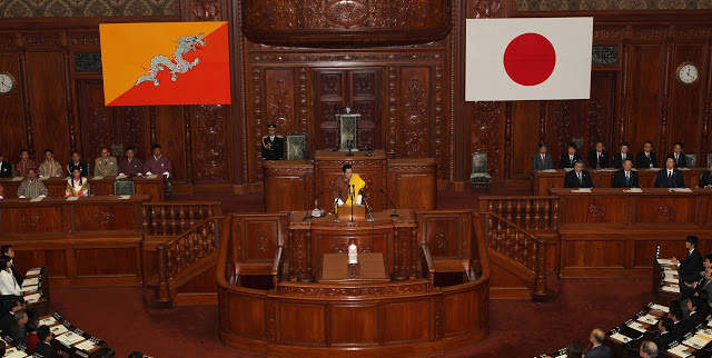 His Majesty addressing the joint session of parliament in Tokyo. His Majesty expressed his solidarity with the people affected by the earthquake and also supported Japan’s aspiration as permanent member in the UN Security Council. “Bhutan not only believes in the need to expand the United Nations Security Council, we are convinced that Japan must play a leading role in it. You have our full commitment and support.” The Speech was televised live by NHK and webstreamed by the Diet secretariat.