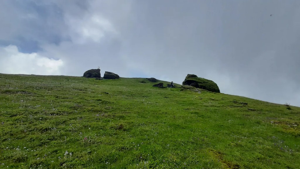 Salading Peak, 4,350m, central Bhutan – Three boulders, believed to be Aap Shatsi’s stove, stand today on the peak of Salading among the Black Mountains.