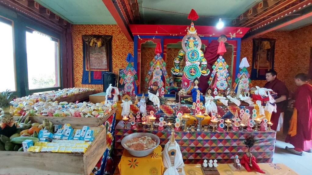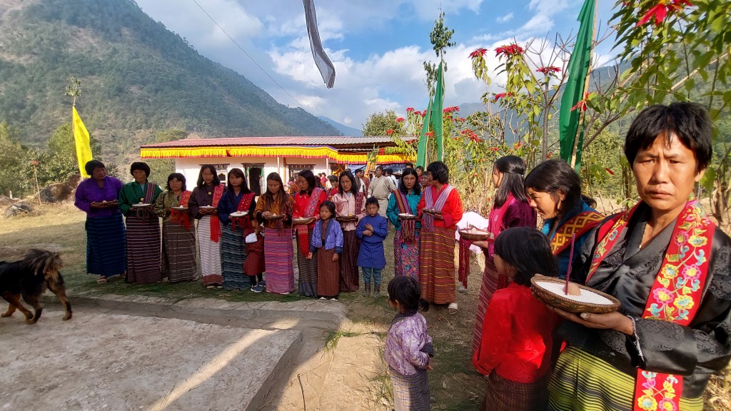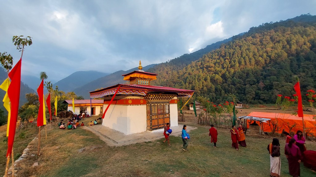 The Rukhaps – also known as Oleps, have done it. The Lamgaps, who are Phobjibs resettled here, did it. Just over a decade ago the Oleps were scrambling for food in the jungle or elsewhere – and living day by day – not knowing where their next meal would come from. And living in make-shift bamboo shacks. Yet in less than a decade, they were seeing a second temple being consecrated in their village. And now they are even joined by their urban members who drove into their village in their own cars. The villagers produced all the food and hosted some 50 monks needed for the three-day festival. The urban salary men and women pulled out one-third of the cash of 450,000 ngultrums required for the three-day festival. I covered the rest.
