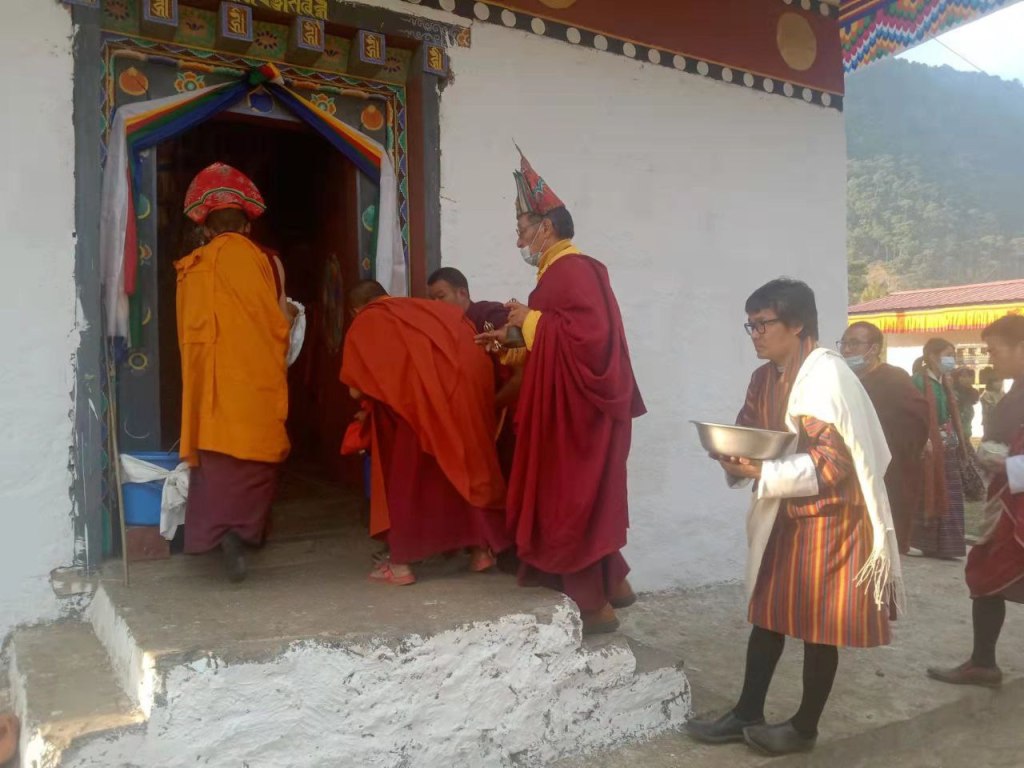 15 years, three temples and many happy and historic moments later the resident lama, Ugyen Tshering, and I came up with an ambitious 5-day Tshobum-Rabney-Tshechu project. We wanted the Tshobum (literally meaning 108,000 Festive Offerings) to help the locals accumulate Tsho (prosperity merit) so that they do not return to being poor and destitute – and to offer gratitude to the divine and to those who held our hands. The Rabney, meaning “consecration”, was to sanctify the two additional temples I had built – one in Rukha and one in Lamga, during the the three pandemic years. Finally, the Tshechu was to put a final seal of Dharma in this virgin territory, which has mostly been practicing shamanism and animism.