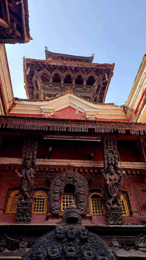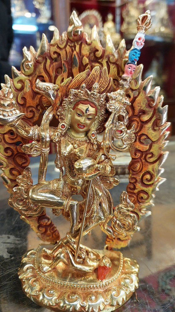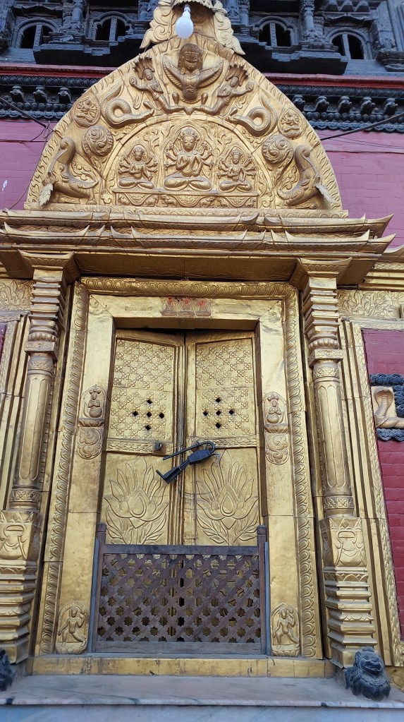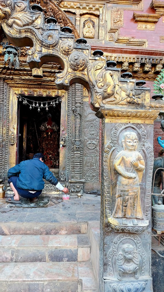 I bought two small statues – one of Vajravarahi (Dorje Phagmo) and the other of Buddha Shakyamuni, from an artisan in Patan. He is a descendent of the legendary Abhaya Raj Sakya, who built the Mahabuddha Temple (see picture) in Patan more than 500 years ago.