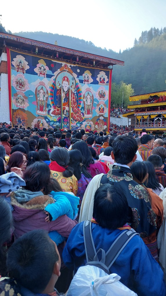 I hate gatherings, but this time I couldn’t avoid it. I had to get the blessings of Paro Thongdrel. This large and sacred scroll is exhibited only once a year to the public. It is believed to grant any wish you make.