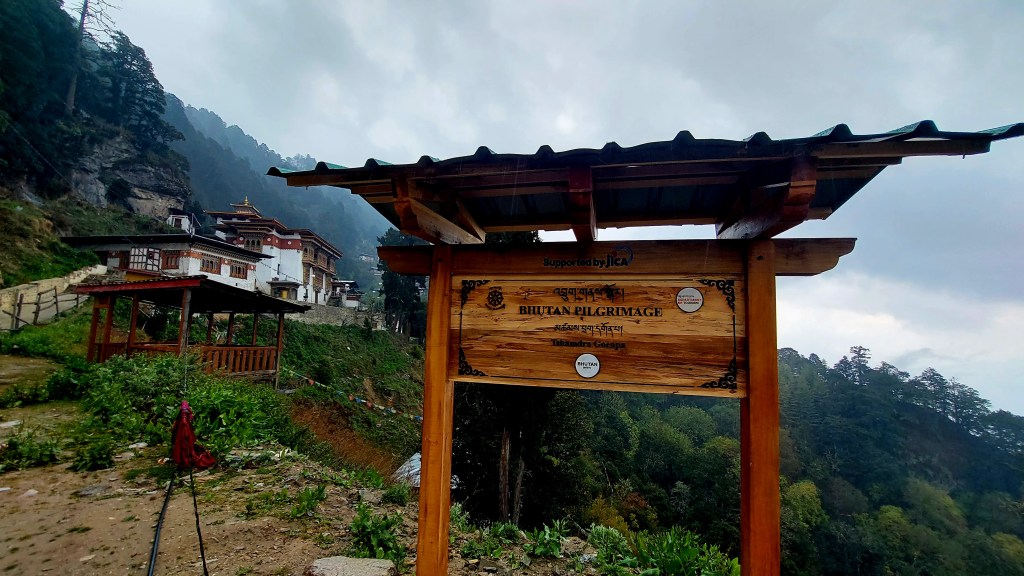 Tshamdrak (also written Tsamdrag) Gonpa is now connected by road and there is no need to make the steep uphill hike on foot.