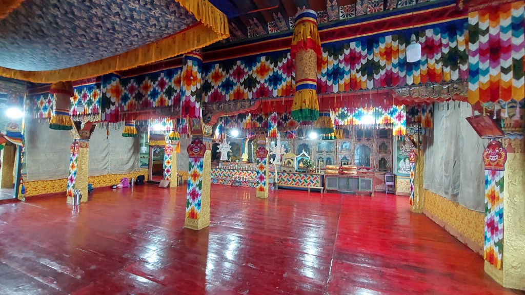 Of great interest to many is the goenkang, which houses the statues of the powerful tutelary deities plus Aum Ngagsum, the deity protector Ekjati of the Peling Tradition.