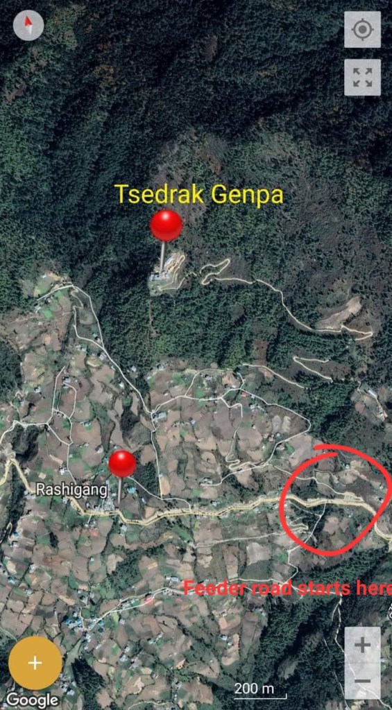 Tsedrak Gonpa is above Tshegon Village just before Rangshikha. You can see it on top of the mountain to the right from Gatro Restaurant. Take the first rough road to the right after the restaurant.