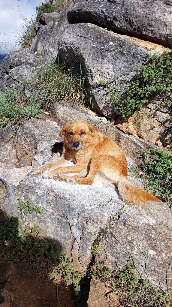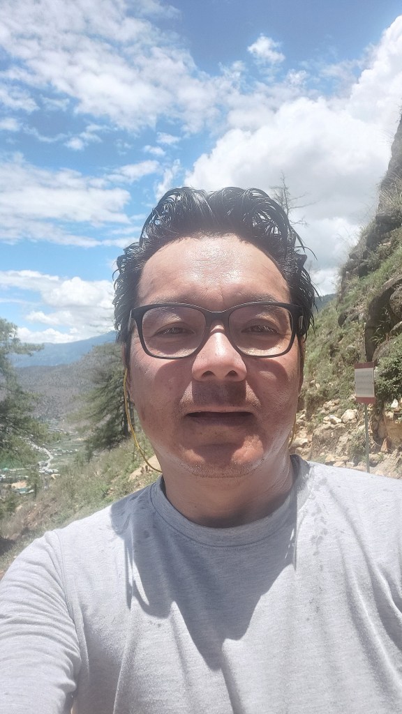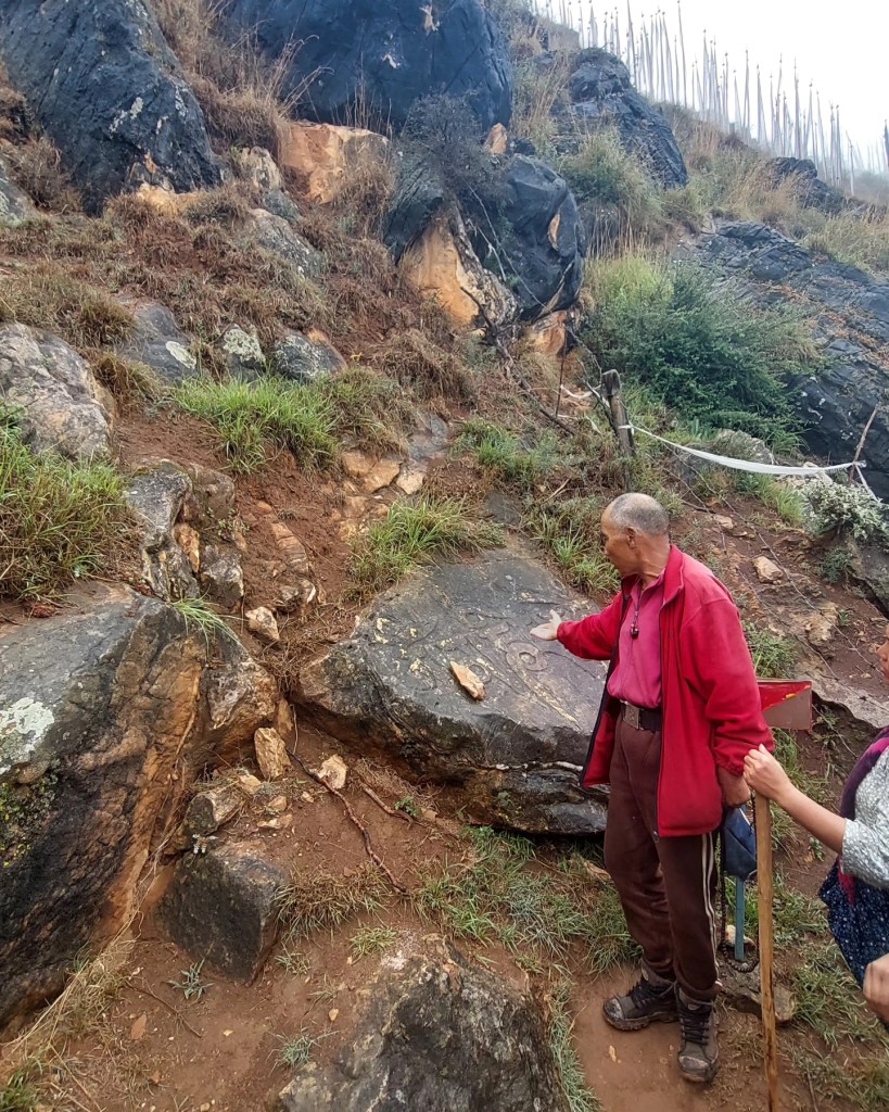 “This is a blessed rock. If you have back pain, knee pain, shoulder pain, or headache, you rub here on different spots,” he added. A highly-spirited man, Lotey went on to demonstrate how to do the rubbing and switches from Dzongkha to Sharchop to Hindi, which made us all laugh or smile. But I did try rubbing my back on the boulder like a bear, and it did work. Whether it was my blind faith, or the real blessings from a boulder, my chronic backache made some comeback this time but not to disrupt my mission of 108.