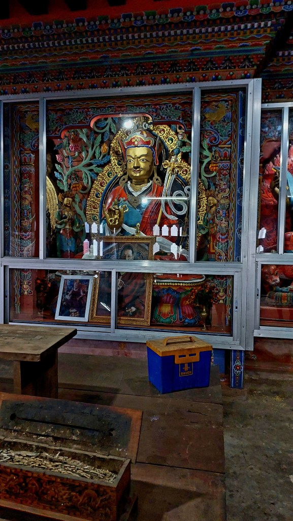 This statue of Guru is curiously wearing the robe from left to right, which is the opposite from the usual right to left. No one could explain to me why and how this happened. Nonetheless, the statue is supposed to be very sacred because of this.