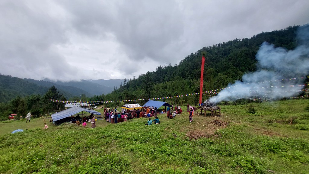 Riwo Sangchoe (Dz. རི་བོ་བསང་མཆོད་), literally meaning “Mountain Smoke Offering”, is a popular practice of offering sang (incense and smoke) to the universe.
