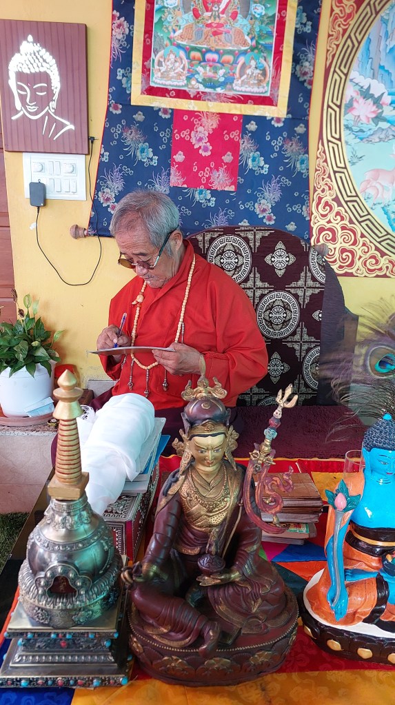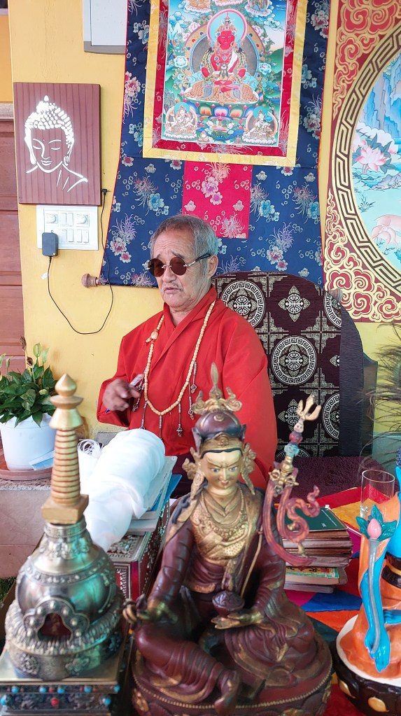 (In the picture Rimpoche is blessing my prayer beads and my gaw, which I carry everywhere.)