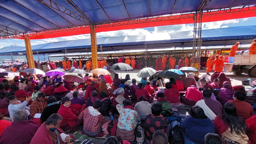 So, today, on the advice of my teacher, I paid a visit, listened to his teaching from the woods (which I didn’t understand a word but it’s fine), made a monetary offering for the organisers, and a cake with less sugar for His Holiness. And above all, as instructed I prostrated three times from a distance, from this spot (I didn’t bother the curious onlookers) and told the Buddha that with this today’s visit I be marked present for every day of the thirty days. I promised to be better in my next life by being a monk and be a more serious practioner.