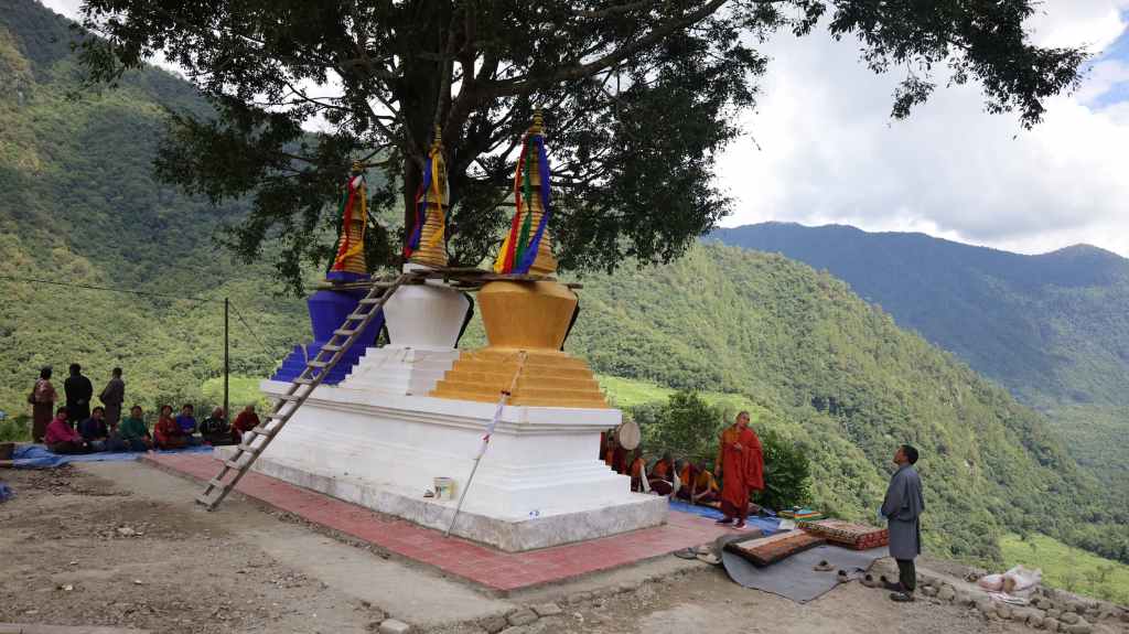 I dedicated the holy Saga Dawa month (the fourth month in the Bhutanese calendar) rebuilding a Rigsum Gonpo stupa in Morakha village in Athang Gewog. The place is associated with two very important figures in Vajrayana Buddhism. First, it is believed to be the abode of Vajrapani (Chana Dorje), which is referred to as Changlochen. Second, it is associated with Mendharawa – one of the principal consorts of Guru Padmasambhava.