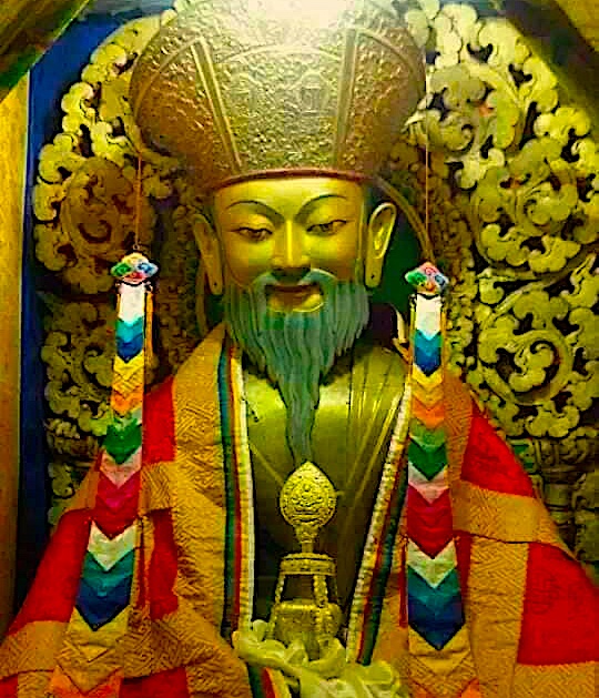 The other amazing relic (for me) is his phurpa (ritual dagger), which seems to be very powerful. There is also a conch, a bell and a cymbal, which were all gifted to the Zomlha Chugmo. There is also a small metal statue called kharsapani, which is also believed to be self-arisen (rangjung). Some sources say that there were more relics and belongings of Zhabdrung but were apparently taken to Lama Lhakhang in Wangdue Phodrang Dzong – and brought here when the new dzong was built to be used as nangten. Nevertheless, in my view, Jarogang Lhakhang still has the biggest collection of relics associated with Zhabdrung – making it a recommended pilgrimage destination for every Bhutanese – irrespective of the faith, sect, or religious affiliations. In fact Zhabdrung was the founding Father of Bhutan – besides being the emanation of Avalokiteshvara and Guru Rimpoche.