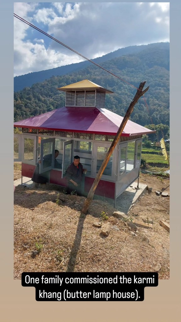 I offered three butter lamps in a new large Karmi Khang that a family from Rukha had bought in the memory of their father, who passed away a few months back. It arrived on the same day I landed there. I prayed that the people of Rukha continue on their path and be a part of this small great nation, as it moves confidently into the future.